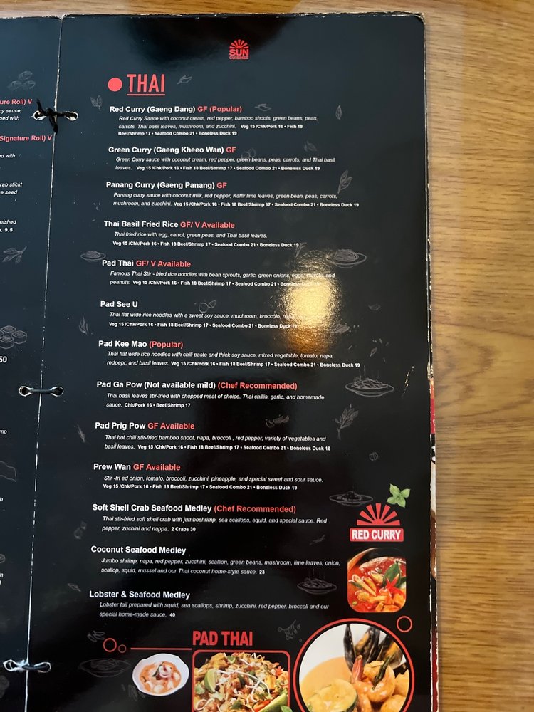 Sun Cuisines, located in Buffalo, NY, offers a diverse menu of Thai, Sushi, and Japanese cuisine. This casual restaurant caters to various dietary preferences with options for vegans and vegetarians, and even accepts cryptocurrency as payment. The lunch menu features flavorful dishes like Burmese Flat Wide Noodle with hot and sour sauce, Pad Thai, and Green Curry. Customers rave about the service and the quality of the food, with standout items like crispy duck and black rice sushi. The unique flavors and generous portions make dining at Sun Cuisines a delightful experience. Whether you're looking for a quick lunch or a group dinner, this restaurant is a must-try for those seeking delicious and authentic Asian cuisine.