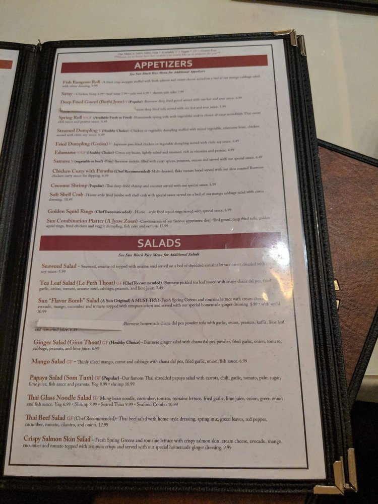 SUSHI MENUDINNER PLATTERSPOPULAR SUN ROLLSREGULAR ROLL & SPICY SUN ROLLSSPECIAL SUN ROLLSSUN ROLL COMBINATIONSSUSHI ENTREES & BLACK RICE SALADTRADITIONAL ROLLS